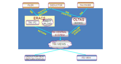 : which consists of an infrastructure for interface with the taxpayers (a nation wide network of TIN-Facilitation Centres i.e. TIN-FC) and a web-based utility for upload of electronic returns of Tax Deduction at Source (TDS) & Tax Collection at Source (TCS) and Annual Information Return (SFT) to the central system of TIN.